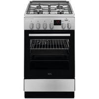Aragaz AEG CKB56480BM, Mixt, 4 arzatoare gaz, Cuptor electric multifunctional, SteamBake, AirFry, Gratare fonta, Aprindere integrata, Grill electric, Clasa A, 60 cm, Inox