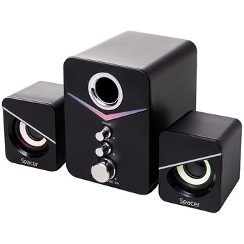 Boxele Spacer Gaming 2.1 sunt apreciate pentru dimensiunile compacte și designul RGB atractiv, oferind un sunet clar și bass reglabil bun la preț mic. Subwoofer-ul mic produce un bass surprinzător de puternic, ideale pentru birou sau cameră mică. Sunt ușor de utilizat, cu reglaje pentru bass și înalte, și se alimentează pe USB. RGB-ul nu este sincronizat mereu, dar adaugă ambianță. Totuși, la volum mare apar distorsiuni, și dimensiunile mici limitează puterea. Per total, sunt o alegere bună pentru gaming casual și uz zilnic, cu raport calitate-preț excelent.