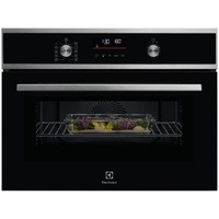Arată grafic Mai multe detalii » Cuptor incorporabil Electrolux EVL6E49X, Electric, 44 l, Functie microunda, Putere microunde 1000 W, Butoane retractabile, Panel frontal cu insertie de sticla, Afisaj digital, Usa cu 3 straturi de geam, Grill, 1 tava emailata + 1 gratar, Inox+Negru