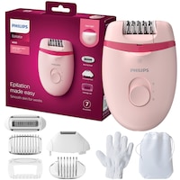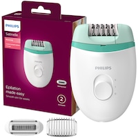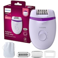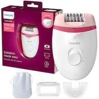 Epilator Philips Satinelle BRE255/00, 2 viteze, Opti-light, cap de epilare lavabil, 3 accesorii, Alb