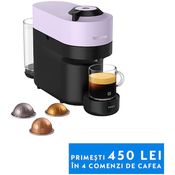 Espressorul Nespresso by Krups Vertuo Pop este apreciat pentru calitatea cafelei spumoase pe care o prepară. Folosește tehnologia Centrifusion care citește automat tipul de capsulă și reglează cantitatea de apă. Deși unii utilizatori consideră aparatul zgomotos în timpul extracției, majoritatea sunt mulțumiți de rezultate. Un avantaj este voucherul de 150 lei pentru capsule inclus la achiziție. Principalul dezavantaj menționat este că funcționează doar cu capsule Nespresso Vertuo, care sunt mai scumpe și mai greu de găsit decât capsulele standard.