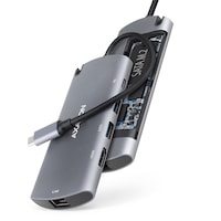 Hub USB Axagon HMC-4KX3, Triple 4k Display, Superspeed USB-c, 2 HDMI, DP, GLAN, 3 USB-A, PD, card reader, audio out, carcasa metalica