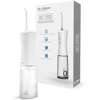 Irigatorul bucal Dr. Mayer WT3900 este portabil și eficient pentru curățarea interdentară, ideal pentru cei cu aparat dentar sau sensibilitate gingivală. Utilizatorii apreciază cele cinci trepte de presiune și bateria de lungă durată, care ține săptămâni. Este compact, ușor de curățat și vine cu două capete. Oferă jet pulsat puternic, chiar pe modul soft. Mulți îl consideră un înlocuitor bun pentru ața dentară. Totuși, unii au raportat defecte după câteva luni. În general, este recomandat pentru utilizare zilnică și călătorii.