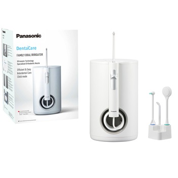 Irigatorul oral Panasonic Ultrasonic EW1614W503 este un model staționar cu 10 trepte de presiune și mod copil, apreciat pentru eficiența în curățarea dinților și bracket-urilor. Capacitatea rezervorului de 600 ml permite utilizări complete fără reumpleri, iar presiunea ultrasonică este considerată puternică de majoritate. Utilizatorii îl laudă pentru reglarea presiunii și utilizarea familială, inclusiv de copii. Comparativ cu modele anterioare, oferă performanțe superioare, dar unii notează zgomotul și instabilitatea rezervorului. Este văzut ca un upgrade bun de la modele portabile, cu design modern. Produsul este recomandat pentru igiena zilnică, dar necesită spațiu și priză în baie. Totuși, fiabilitatea furtunului este criticată după luni de uzură. În general, oferă un raport calitate-preț bun pentru familii.