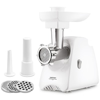 - Accesorii incluse: Versatilitatea mașinii este dată de numărul și tipul accesoriilor incluse, precum site cu diferite dimensiuni, accesorii pentru cârnați sau kubbe, care permit diverse preparate.