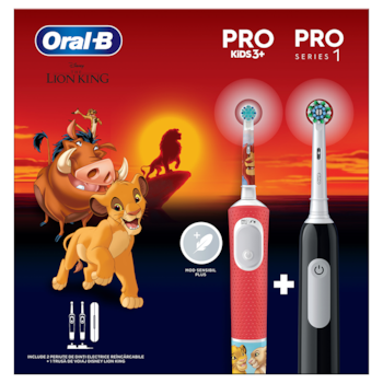 Pachetul conține o periuță de dinți electrică Oral-B Pro Kids Lion King pentru copii și o periuță Oral-B Pro 1 pentru adulți. Periuța pentru copii are curățare 2D, 2 programe, un cap de periaj și 4 autocolante personalizabile, fiind atractivă pentru cei mici. Periuța pentru adulți oferă curățare 3D și un program de periaj. Ambele periuțe sunt eficiente, ușor de utilizat și vin cu o trusă de călătorie. Pachetul reprezintă o soluție completă pentru igiena orală a întregii familii, la un preț avantajos.