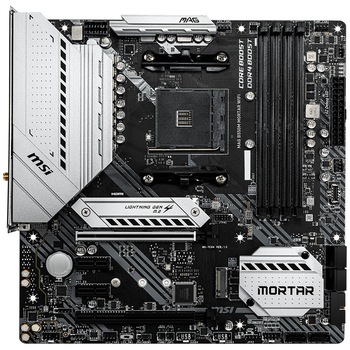 MSI MAG B550M MORTAR WIFI este o placă mATX premium pentru AM4, cu WiFi 6, Bluetooth 5.1 și USB-C. Suportă PCIe 4.0 și Ryzen 5000 out-of-box. VRM rece și BIOS avansat. Include debug LED și multiple header-e. Este foarte apreciată pentru stabilitate și viteze WiFi mari. Considerată best-buy pentru gaming 1080p/1440p.