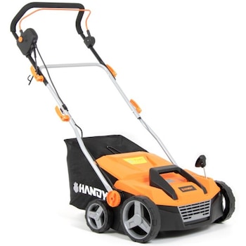 Scarificatorul/aeratorul electric 2 în 1 Handy WNW1800 are o putere de 1800W și o lățime de lucru de 38 cm. Include un sac colector de 45 litri și 5 trepte de lucru. Vine cu două role, una pentru aerare și una pentru scarificare.